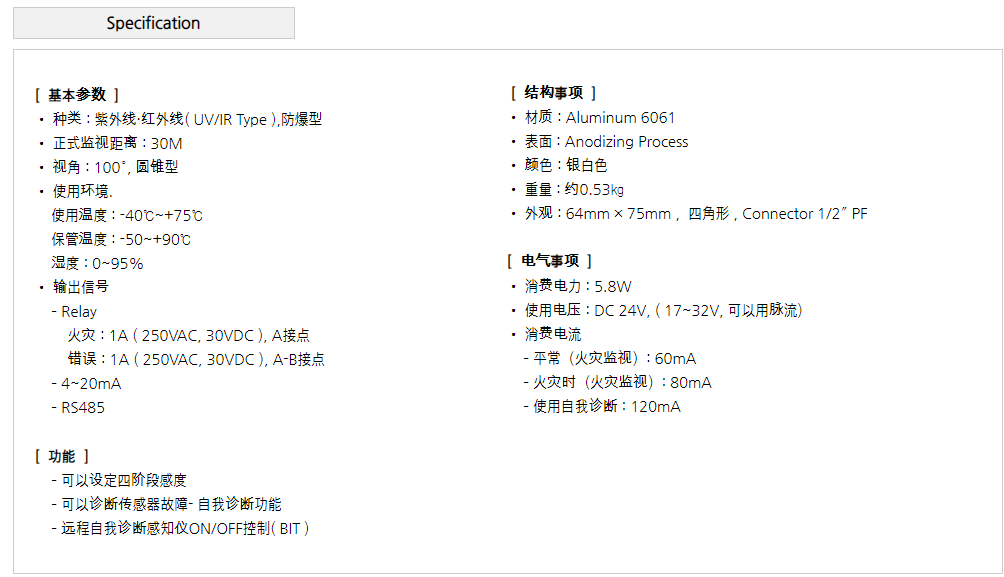 火焰探測器 REZONTECH UVIR 火焰探測器 韓國
