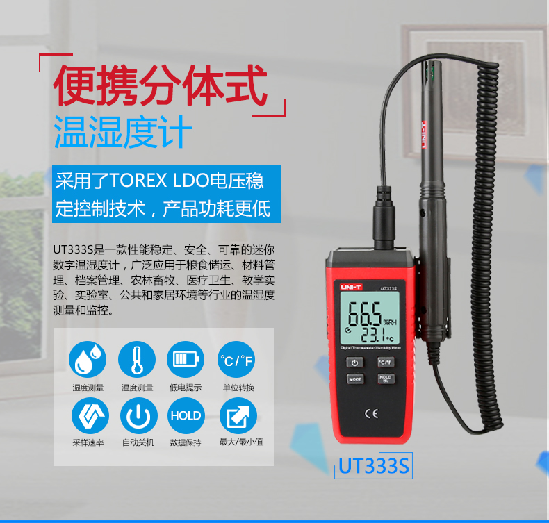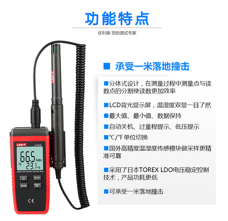 環(huán)境測試儀 優(yōu)利德/UNI-T 分體式溫濕度計,UT333S