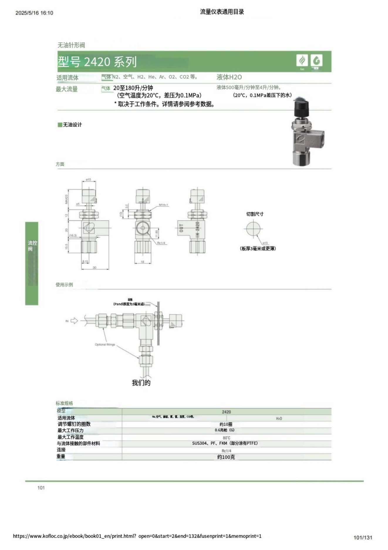 閥門(mén) KOFLOC KOFLOC 2420 型系列 無(wú)油針閥
