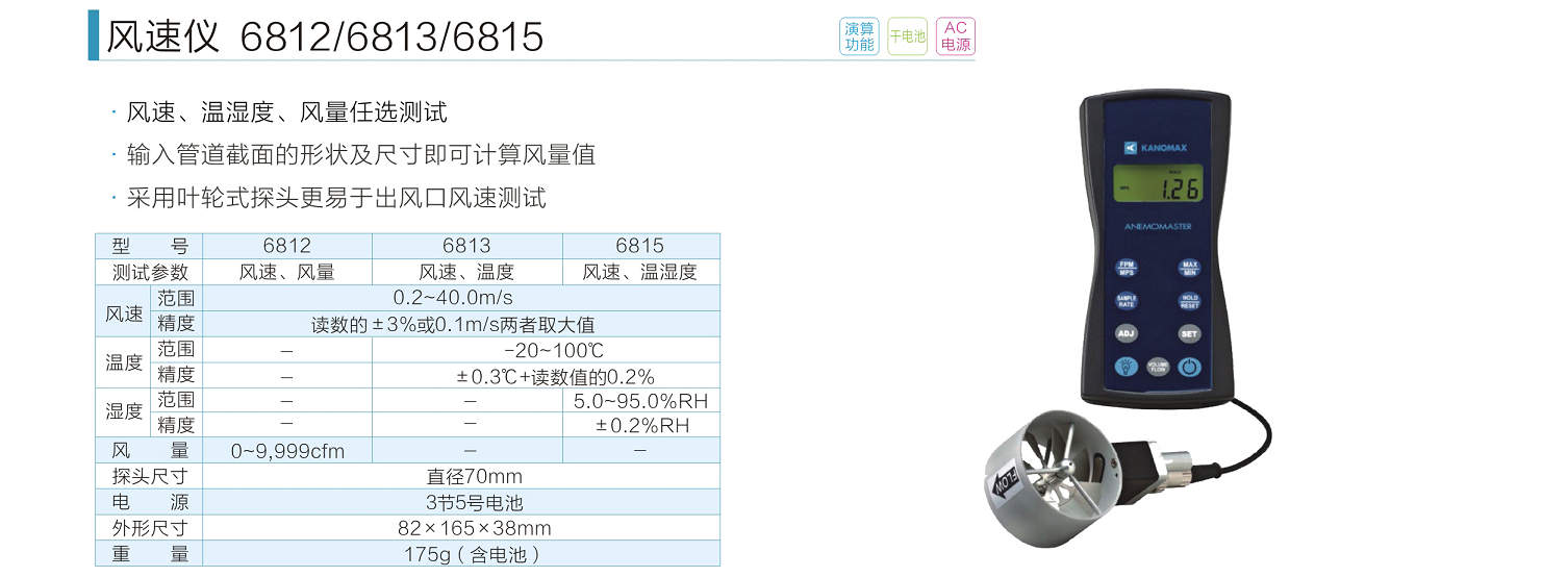 風(fēng)速儀 加野 葉輪式風(fēng)速儀 6812/6813